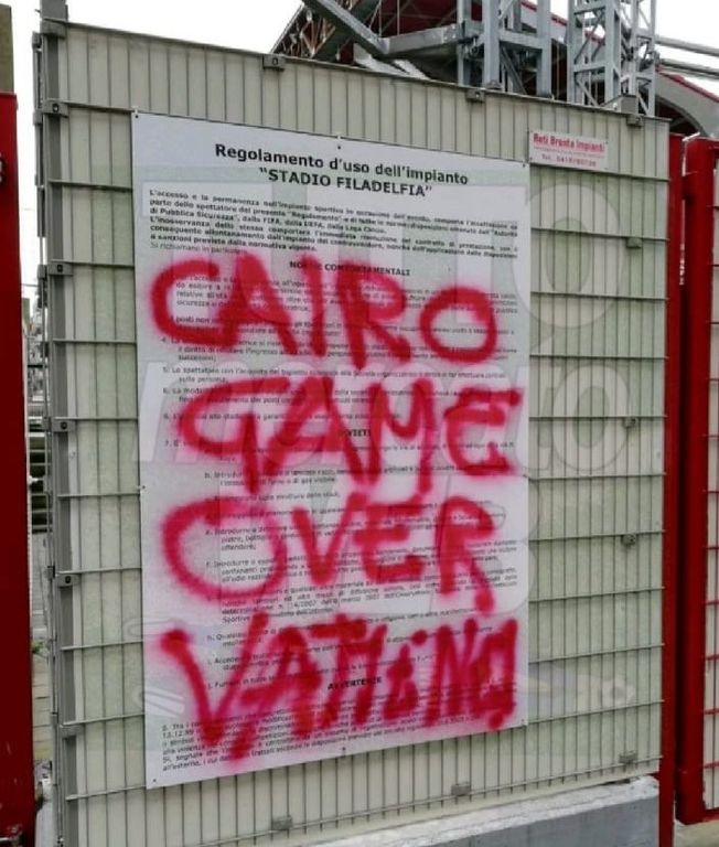Intanto, dopo gli striscioni di contestazione delle settimane scorse, ieri sono apparse scritte contro il presidente Cairo all'esterno del Filadelfia: il gradimento del presidente presso una parte delle tifoseria è ormai ai minimi storici.