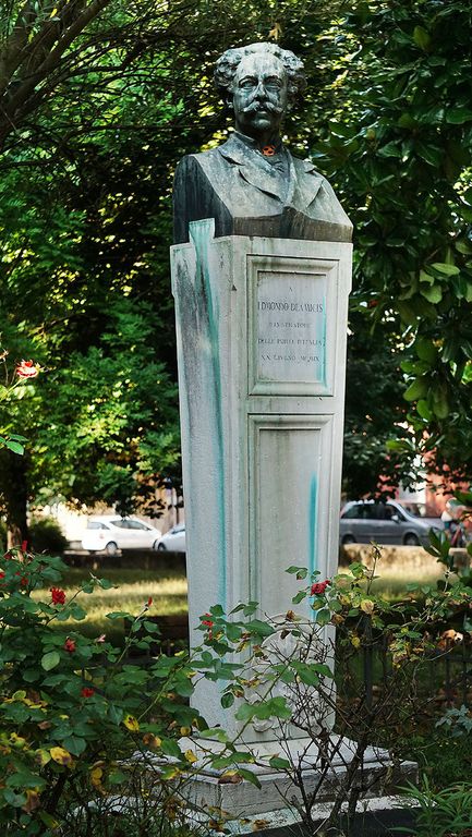 L’intervento è stato autorizzato dal Comune, circa 5 mesi dopo la segnalazione fatta dall’associazione. «Il 24 luglio abbiamo consegnato all’ufficio protocollo una lettera, dove abbiamo messo in luce il degrado di due importanti monumenti cittadini, oltre al bozzetto, ci sono da diversi anni problemi alla base marmorea del busto di De Amicis, modellato da Pietro Canonica, che si trova negli omonimi giardini, ed è degradata dagli agenti atmosferici». Sulla sua base grigiastra ci sono delle evidenti striature celesti, che sono lì da almeno 17 anni: «Sono visibili anche nelle foto pubblicate da Margherita Drago nel suo libro “Le vie raccontano” del 2002» sottolinea Trombotto.