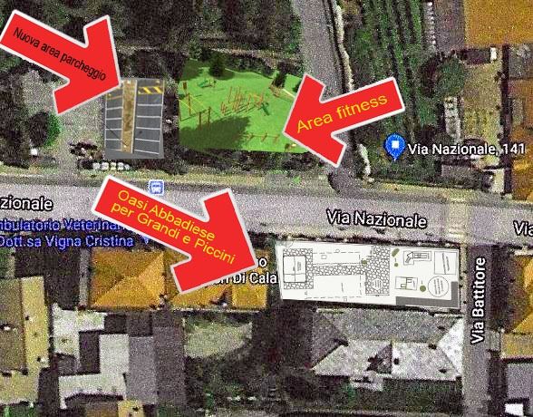 L’attuale parco giochi sarebbe riposizionato in una zona più sicura, lasciando spazio a un’area per i più grandi: «Le giostrine verrebbero spostate nel cortile della ex scuola che è recintato, quindi più sicuro e protetto da atti vandalici. Si prevede di installare nuove giostre e sicuramente l’altalena adatta anche ai bambini disabili – spiega Bruno –, nonché una struttura in legno adatta ad essere utilizzata anche per spettacoli, per gli incontri delle associazioni e per le letture all’aperto degli utenti della biblioteca». Al posto dell’attuale parco giochi si creerebbe un’area destinata ai più grandi: «Vorremmo realizzare due zone fitness con installazione di strutture e macchinari per gli esercizi fisici e una zona dedicata al ping-pong che sarebbe unica nel territorio comunale». Inoltre la risistemazione degli spazi permetterebbe di ampliare il numero dei parcheggi utilizzati dai genitori per il trasporto dei figli a scuola migliorando il traffico negli orari di entrata e uscita.