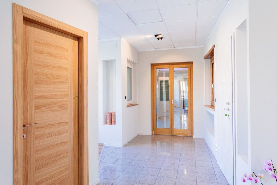 Per la costruzione di accessori, di “falsi telai” e per il supporto alla posa opera, nella parte posteriore dell’immobile, trovano sede il laboratorio e la falegnameria con accesso da via Cimitero.