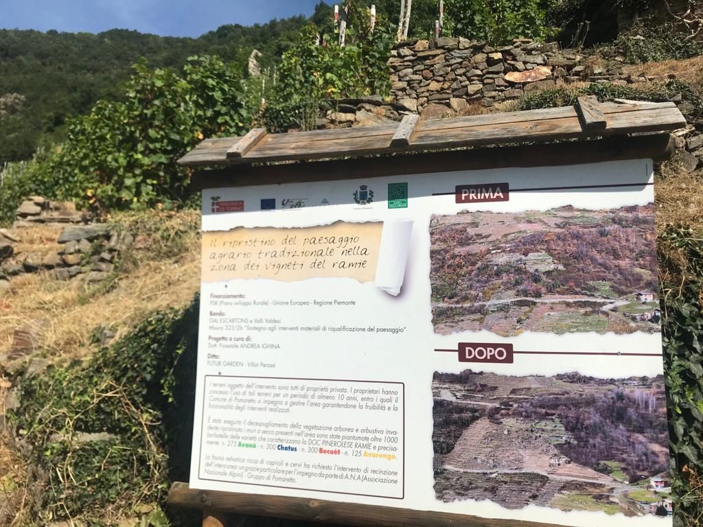 Chi da oltre un decennio lavora per il territorio, per valorizzarlo e allo stesso tempo metterlo in sicurezza è Danilo Stefano Breusa, sindaco di Pomaretto: “Con il mio arrivo a sindaco nel 2009 abbiamo ripreso e creduto molto in quello che voleva dire viticoltura: per il rispetto del territorio e la salvaguardia dello stesso, dall’assetto idrogeologico”. “I progetti che abbiamo portato avanti si localizzano per il recupero dei muretti a secco: possiamo dire che abbiamo portato avanti queste attività con fondi comunali ed europei per recuperare questo territorio, un versante quasi verticale rispetto al borgo vecchio” spiega Breusa.