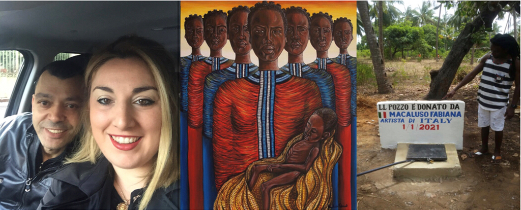 “Tornati dal Kenya si è accesa in me e il mio compagno in arte Alessio Castelli la grande esigenza di aiutare i nostri cari amici del villaggio Keresha e villaggio Msoloni - dichiara l’artista Fabiana Macaluso -: quindi è scattata una gran voglia in me di creare opere dedicate ai Masai per poterle sponsorizzare e vendere presso le gallerie per poter con i ricavati aiutare i nostri amici kenioti e da due anni che attendo questo momento è anche loro… il primo pozzo d’acqua potabile presso il villaggio Keresha è terminato e siamo tutti molto felici perché ora le persone di questo villaggio possono vivere leggermente meglio avendo acqua a disposizione per irrigare la terra per bere e per cucinare per lavarsi tutto sarà molto più facile l’acqua è una risorsa molto importante per avere un po’ più di autonomia".