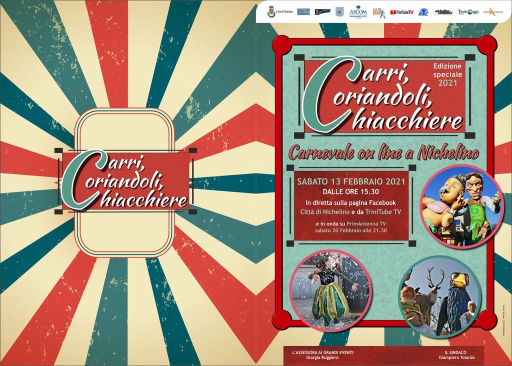 Sarà comunque un evento speciale quello in programma sabato 13 febbraio, dalle ore 15.30, con “Carri, Coriandoli e Chiacchere” che andrà in diretta sulle pagine Facebook di TorinOggi e della Città di Nichelino. Un appuntamento da da non perdere e ricco di novità e allegria. Per partecipare in diretta al concorso delle maschere rivolto ai bambini delle scuole primarie occorre prenotarsi inviando un messaggio WhatsApp al numero 0110379600 entro il 10 febbraio.