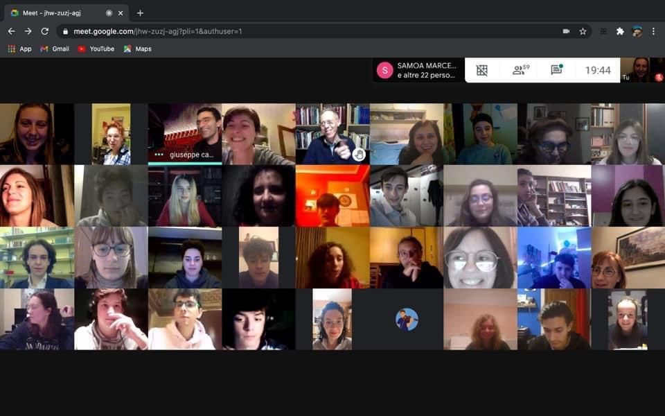 Molti ragazzi si sono collegati per questo evento e sono stati invitati a fare una fotografia davanti allo schermo per formare un mega collage da postare sui social e da inviare in segno di solidarietà proprio al Teatro Regio.