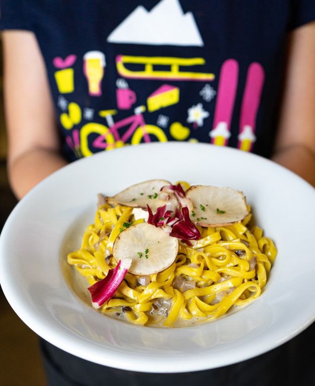 Menù degustazione della settimana (20 euro): comprende cestino di parmigiano con insalatina gustosa e selezione di affettati ed involtini di peperoni ripieni al forno, un primo a scelta fra gnocchi alla toma di Martiniana oppure tagliatelle al ragù di trota salmonata e pomodori confit, un secondo a scelta fra scaloppine al limone e cinghiale al çivet ed un dolce a scelta fra bunet, creme caramel e torta pere e cioccolato.