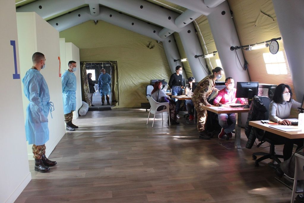 Il centro vaccinale, come raccontato dal maggiore medico Andrea Pittarelli, è stato convertito in sole 48 ore. “All’interno della struttura sono stati allestiti 3 box, capaci di erogare dalle 40 alle 50 vaccinazioni l’ora. All’interno opera il dispositivo sanitario militare, costituito da 3 ufficiali medici e 4 sottufficiali infermieri”.