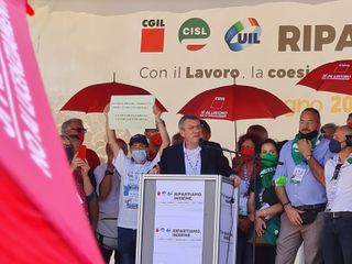 "Ripartiamo, insieme. Con il lavoro, la coesione e la giustizia sociale per l'Italia di domani" è lo slogan delle manifestazioni unitarie di Cgil, Cisl, Uil che si svolgono in contemporanea. A Firenze e Bari sono previsti gli interventi del segretario generale della Cisl, Luigi Sbarra, e del segretario generale della Uil, Pierpaolo Bombardieri. A Torino spazio invece a Landini della Cgil, che parlerà sul palco a mezzogiorno.