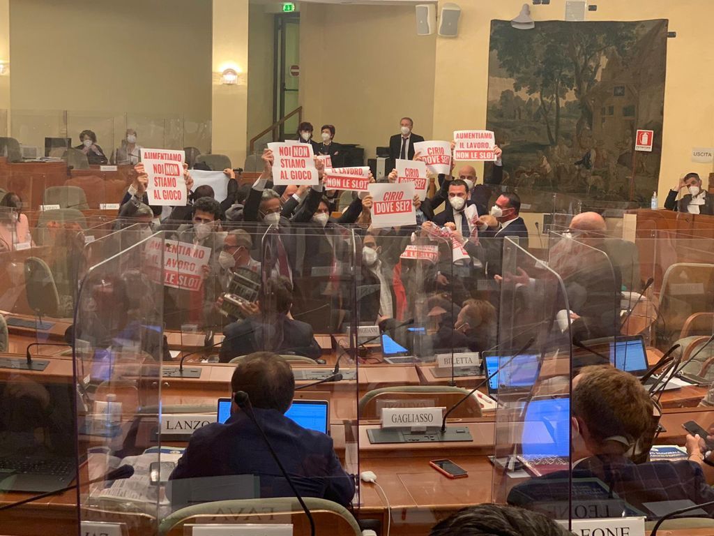 Ma andiamo con ordine. La giunta ha chiesto "per ragioni di urgenza e necessità" l'applicazione del canguro: un articolo dello Statuto che dà facoltà alla Giunta stessa di proporre per ogni articolo emendamenti riassuntivi che vengono votati per primi e fanno decadere tutti gli altri. La decisione è stata fortemente contestata dalle opposizioni, provocando una serie di sospensioni della seduta. Alcuni consiglieri hanno infatti mostrato cartelli (Tra cui quello "Dove sei?" appoggiato sulle poltrone del presidente Cirio e dell'assessore Icardi, a cui viene da sempre contestata l'assenza durante le discussione di questa legge sulla ludopatia), fermando di fatto i lavori.