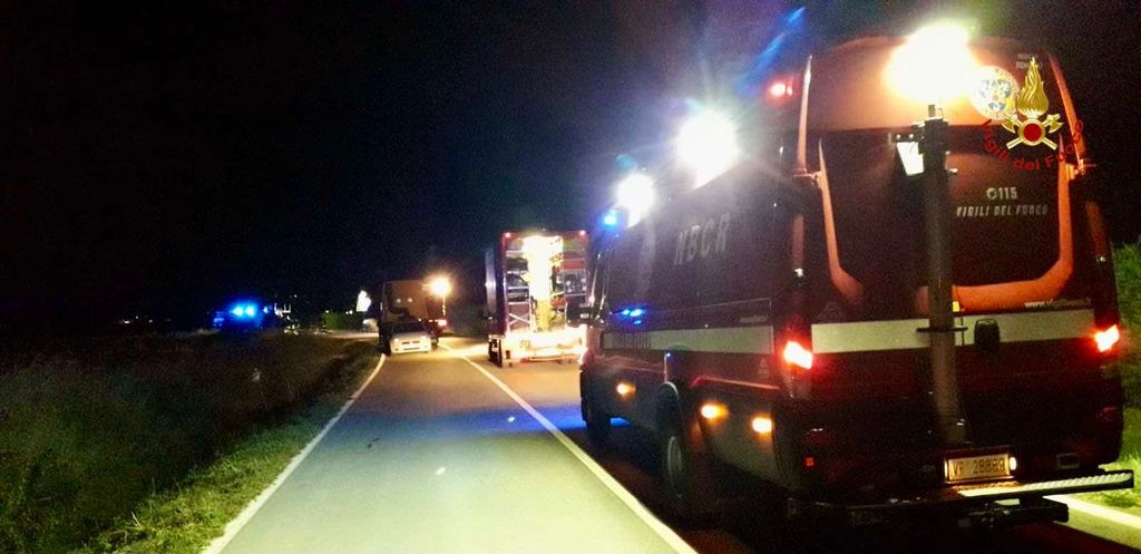 Vigili del fuoco in azione per rimuovere il bilico a Vigone [FOTO]