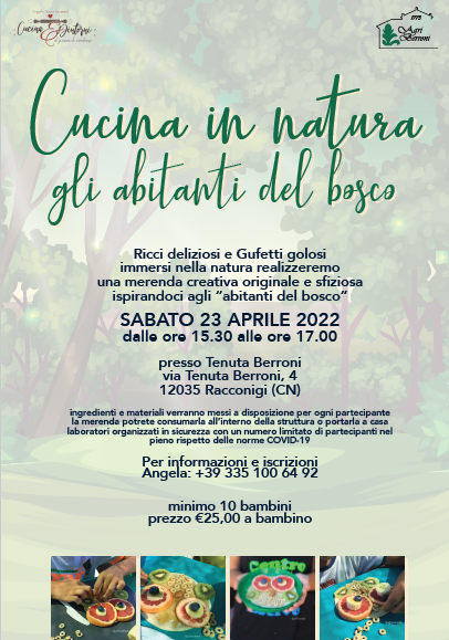 È tutto rivolto ai bimbi, da 5 agli 11 anni, il corso "Cucina in natura: gli abitanti del bosco" che Agri Berroni in collaborazione con il Laboratorio Cucina Creativa di Rivoli organizza per il 23 aprile dalle 15.30 alle 17 nei campi di lavanda della storica tenuta alle porte di Racconigi.