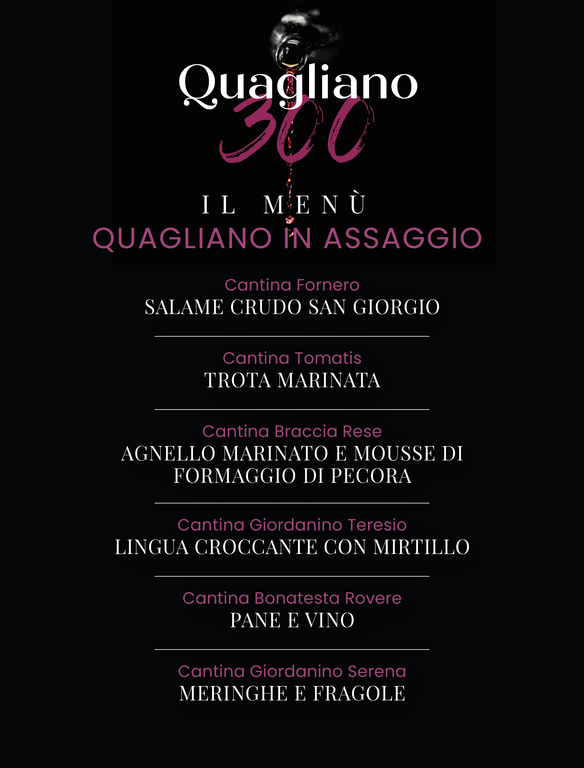 Le due serate, in onore del Quagliano, sono nate da un’idea di Paola Gula, scrittrice, giornalista enogastronomica e sommelier.
