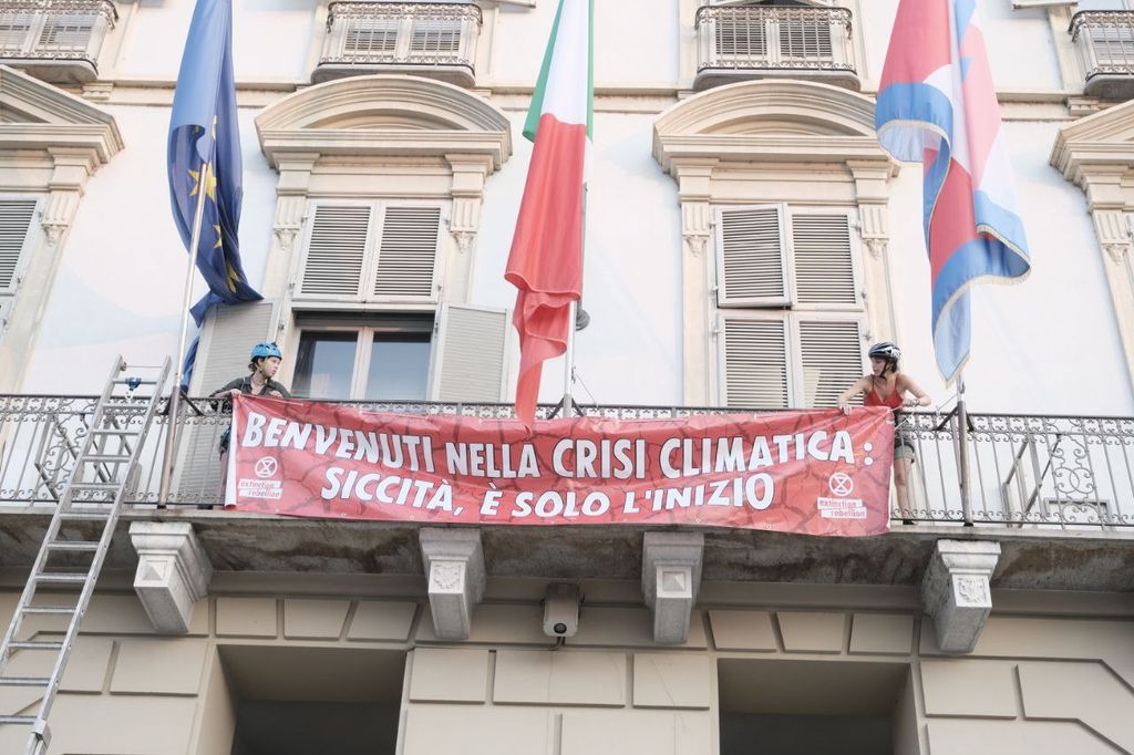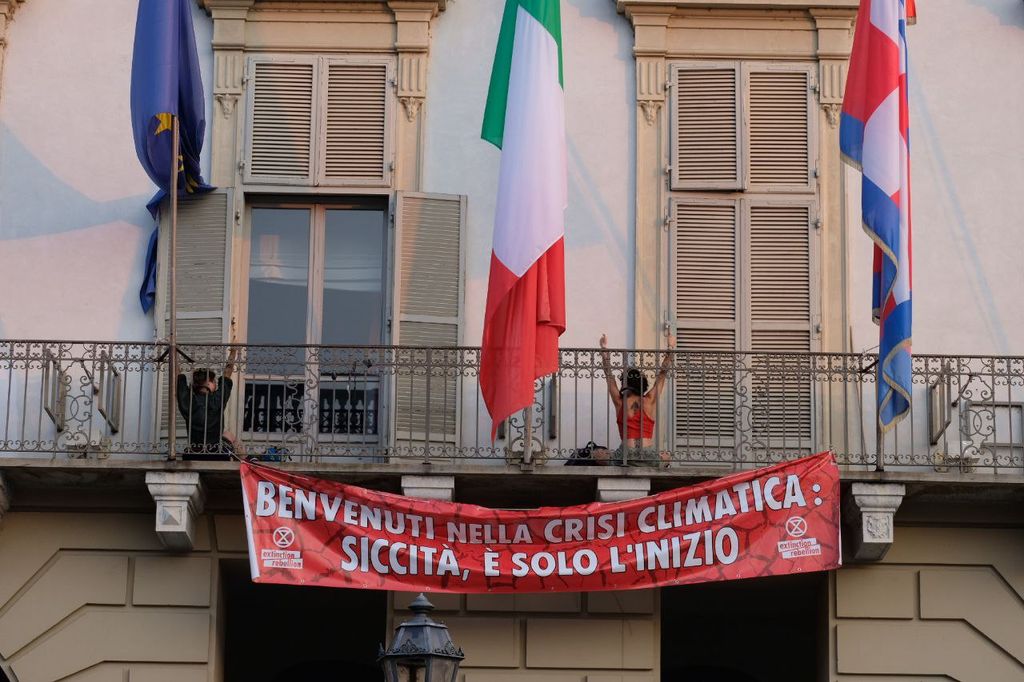 Gli attivisti di Extinction Rebellion riescono nell'impresa saltata qualche settimana fa: "Benvenuti nella crisi climatica" si legge fuori dall'ufficio del presidente Cirio