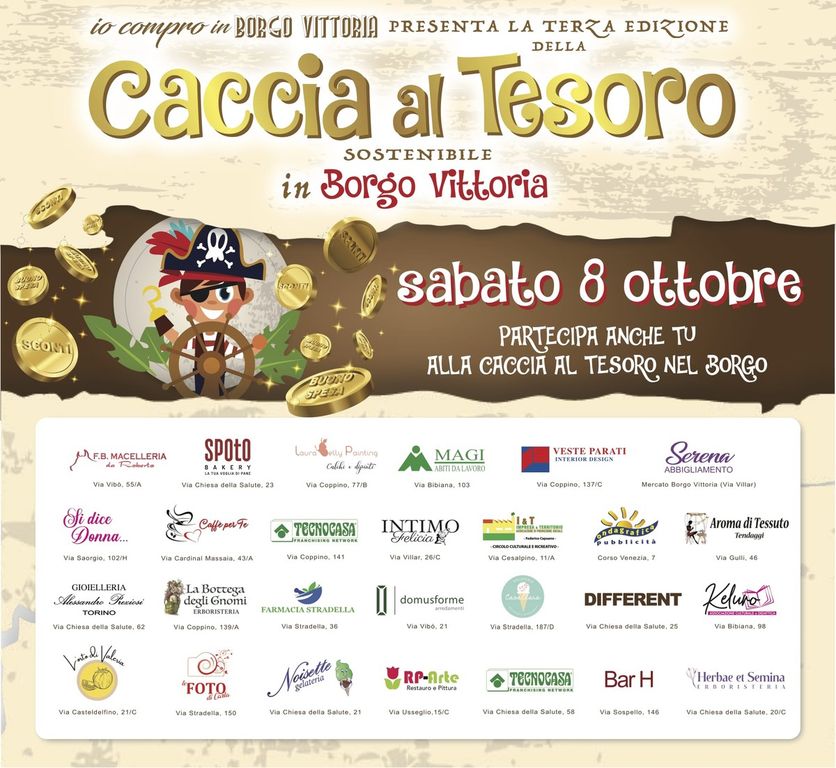 Organizzato dal Gruppo Facebook “Io Compro in Borgo Vittoria” in collaborazione l'Associazione Culturale e didattica Keluro è iniziato il conto alla rovescia per la terza edizione della “Caccia al Tesoro sostenibile in Borgo Vittoria”, un evento patrocinato dalla Circoscrizione 5 della Città di Torino.