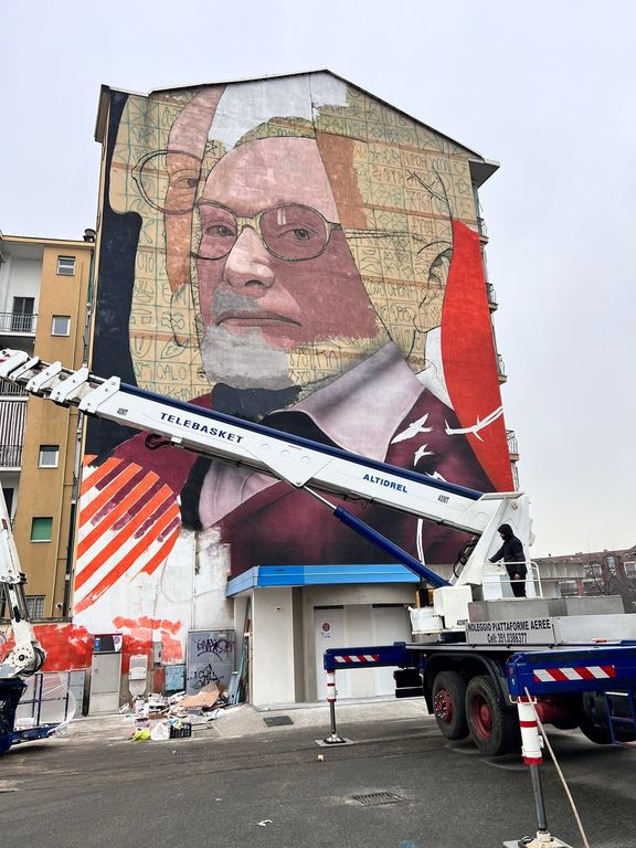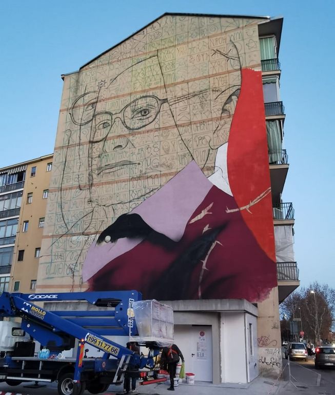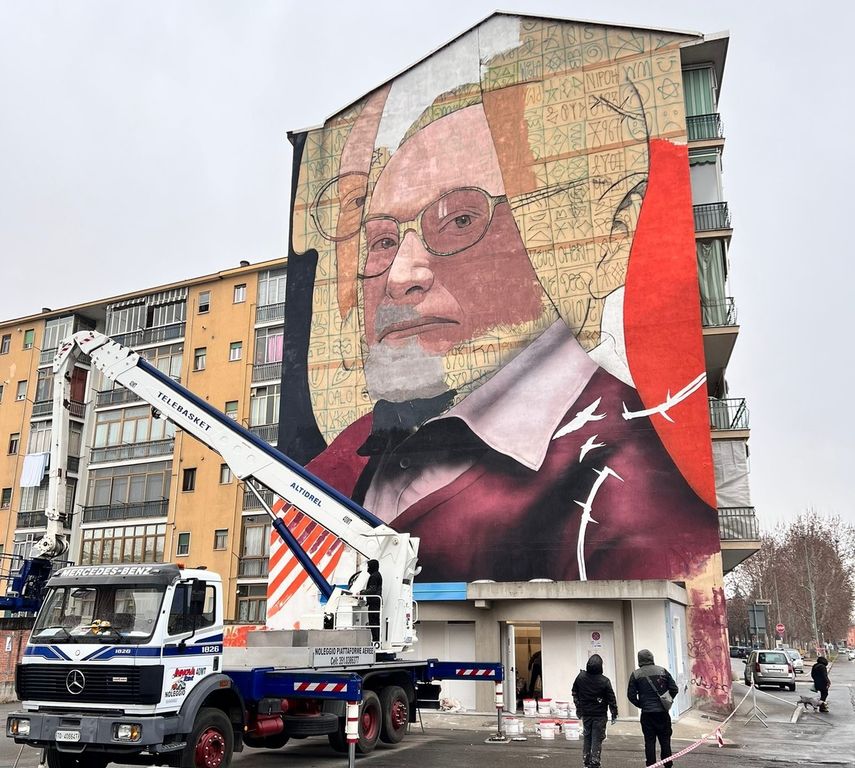 I lavori fervono in questi giorni in via Ponchielli, all'angolo con via I Maggio, dove è in corso di allestimento questo nuovo murales, che occuperà la facciata di un edificio di sei piani. Anche questa nuova opera rientra nel secondo capitolo di Nichelino Lights Up Festival, progetto di riqualificazione urbana attraverso i muri della Città, con l'assessore Fiodor Verzola (padrino dell'iniziativa) e l'autore Giulio Rosk (quello del grande murales di Palermo dedicato a Falcone e Borsellino, ndr) che ancora non hanno voluto svelare l'identità del personaggio, ma da quello che già si intravede è facile capire che si tratta del grande scrittore e intellettuale, che aveva vissuto l'orrore dell'Olocausto e dei campi di concentramento.