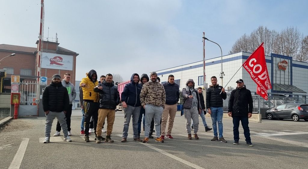 Quattro operai sono stati demansionati e i Si Cobas hanno aperto uno sciopero. I lavoratori si sono ritrovati oggi, prima delle 7, fuori dai cancelli della Raspini di Scalenghe.
