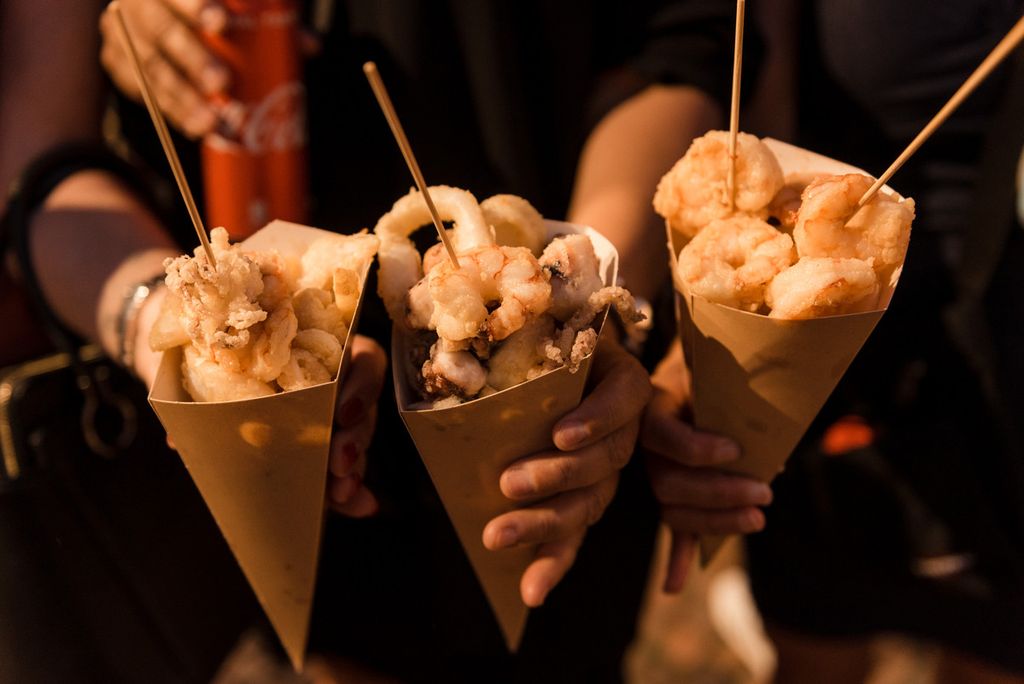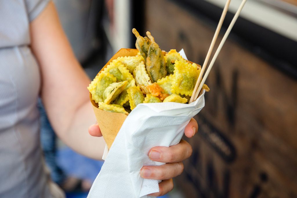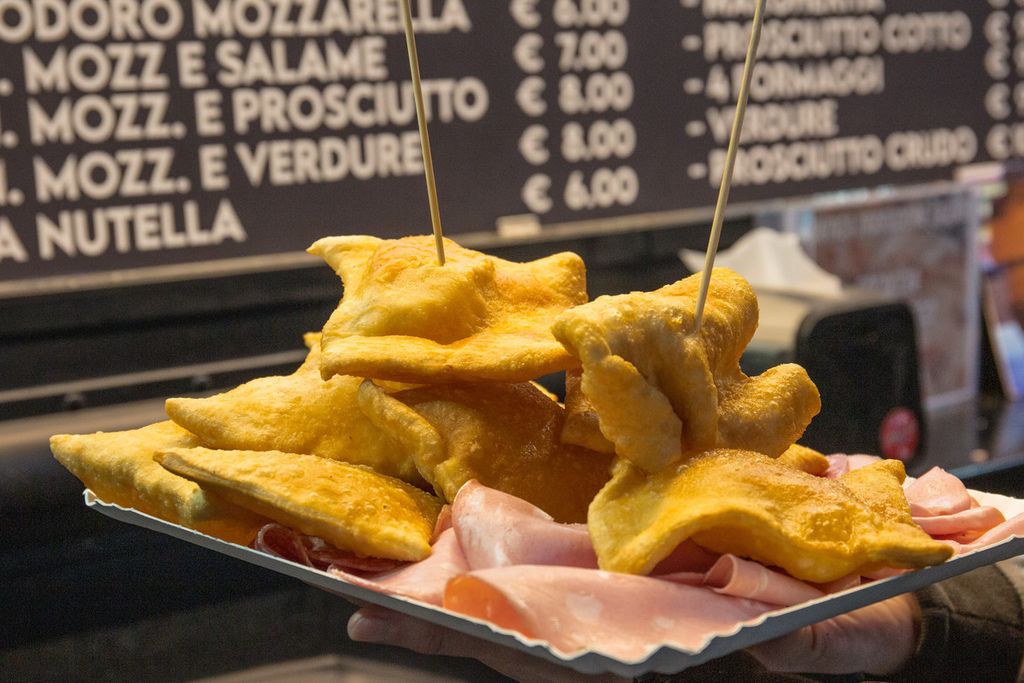 La tradizione comanda con olive ascolane, Pane e panelle, pane cunzato e pane con milza, mini arancini, Pan tometta, Pan Tartufo, Panzerotti, Gnocco Fritto con salumi e nutella, Pinsa, Raviolini del Plin, il Cuzzetiello Napoletano, con un tocco dei sapori della vera cucina partenopea.