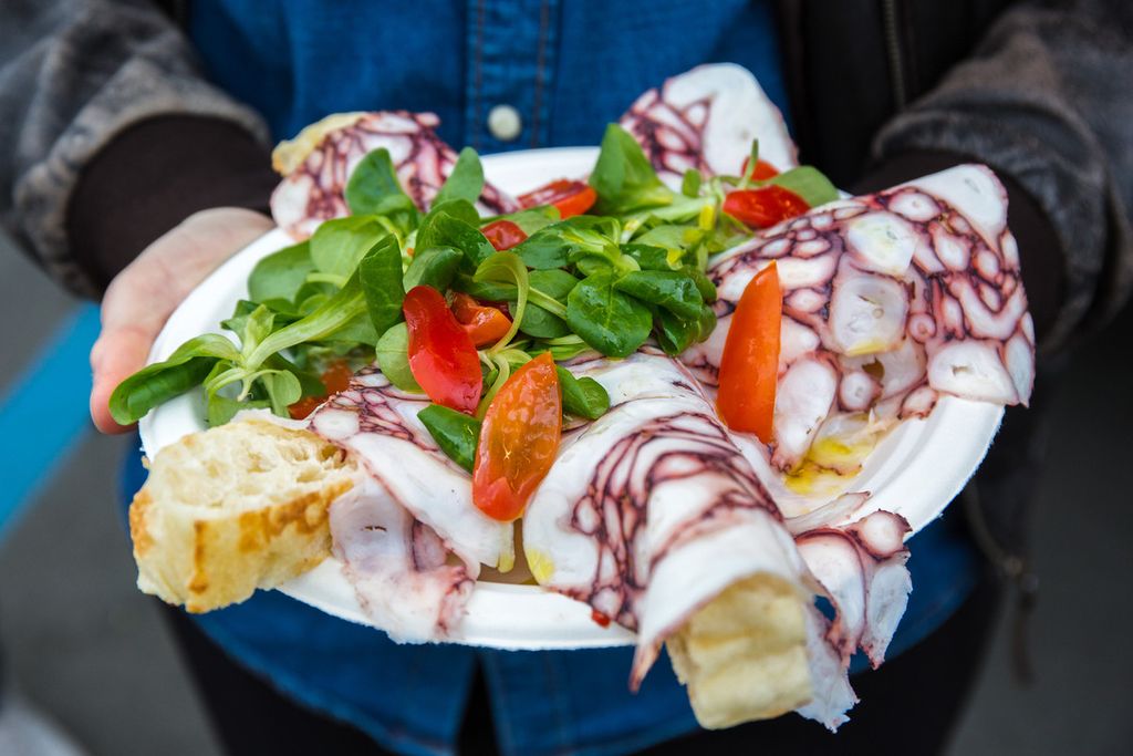 Carpaccio e altre specialità di polpo, frittura di pesce e specialità con salmone, moscardini, pesce spada saranno la gioia degli amanti del pesce, mentre chi vuole andare “oltre confine” troverà hot dog, hamburger di Black Angus, pulled pork, specialità thaï, vietnamite e filippine, pad thai, korean corn dog, ravioli al vapore, involtini alle verdure, eby fry, takoyaki, samossa, tom yum, pan pork, pita, falafel, burritos, tacos e nachos.