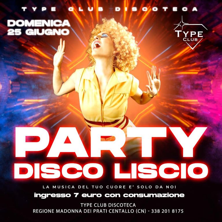 Il Type Club ha una programmazione di serate che inizia già il mercoledì sera con disco liscio con stage gratuito di Boogie Woogie. Nel mezzo i due appuntamenti del venerdì e, per concludere la settimana, la domenica sera con il Party Disco Liscio!