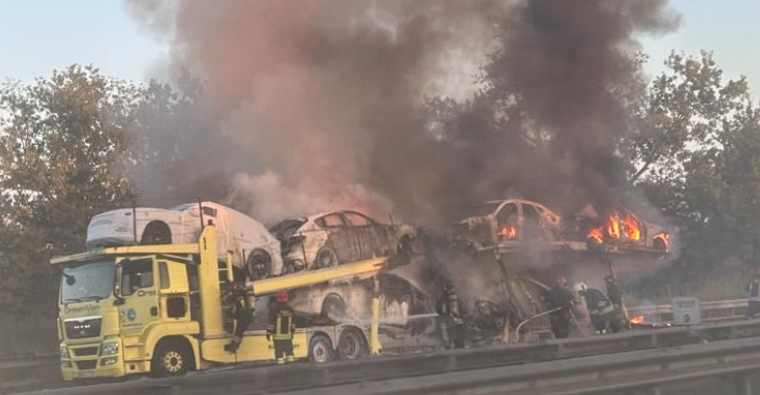 Bisarca in fiamme sulla Torino-Savona, traffico bloccato all'altezza di Carmagnola [FOTO]