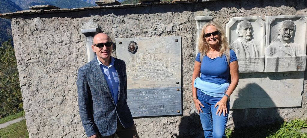 Il tour prosegue e dalla nascita di Lidia porta subito alla sua morte. Nella località di San Martino c’è infatti la sua tomba, in un particolare cimitero diviso da un muro: da una parte i cattolici, dall’altra i valdesi. Qui la guida e i pronipoti di Lidia, Andrea Garavello e Daniela Trezzi, raccontano altre curiosità. “Ben venga la fiction che è vista in tutto il mondo e ha fatto scoprire la storia di Lidia Poët” dice Andrea, che di lavoro è editore e ha pubblicato alcuni libri sull’illustre antenata. Il primo, del 1997, è ‘La Toga Negata’ e dà il titolo a questo tour, mentre l’ultimo, scritto da Cristina Ricci e edito insieme alla casa torinese Graphot, è uscito nel 2022.