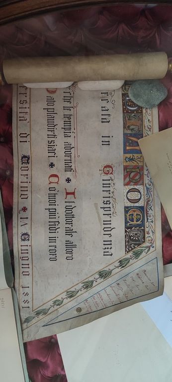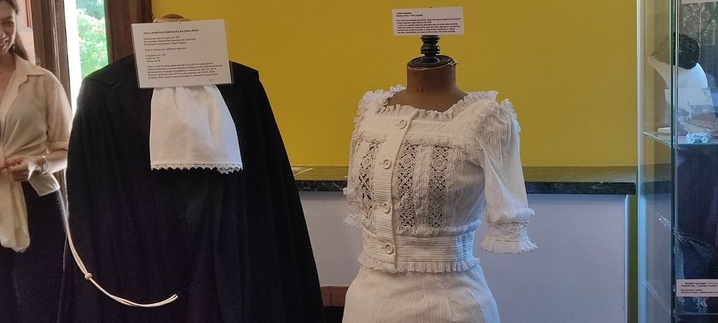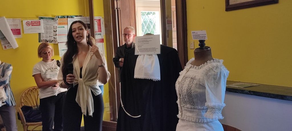 La toga è inoltre uno degli abiti di Lidia Poët che, proseguendo il tour, vengono mostrati nel palazzo del Comune di San Germano di Chisone. Qui si incontrano la storica ed esperta del costume Laura Tessaris, che racconta altre curiosità in ambito moda, e Clara Bounous, autrice del libro ‘La Toga negata’ e ‘Lidia Poët: una donna moderna’.