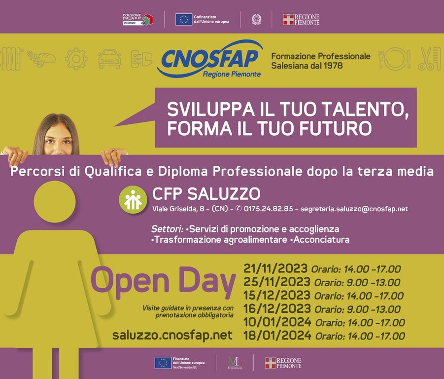 Per informazioni: CnosFap, via Griselda, 8 – 0175248285 – info.saluzzo@cnosfap.net