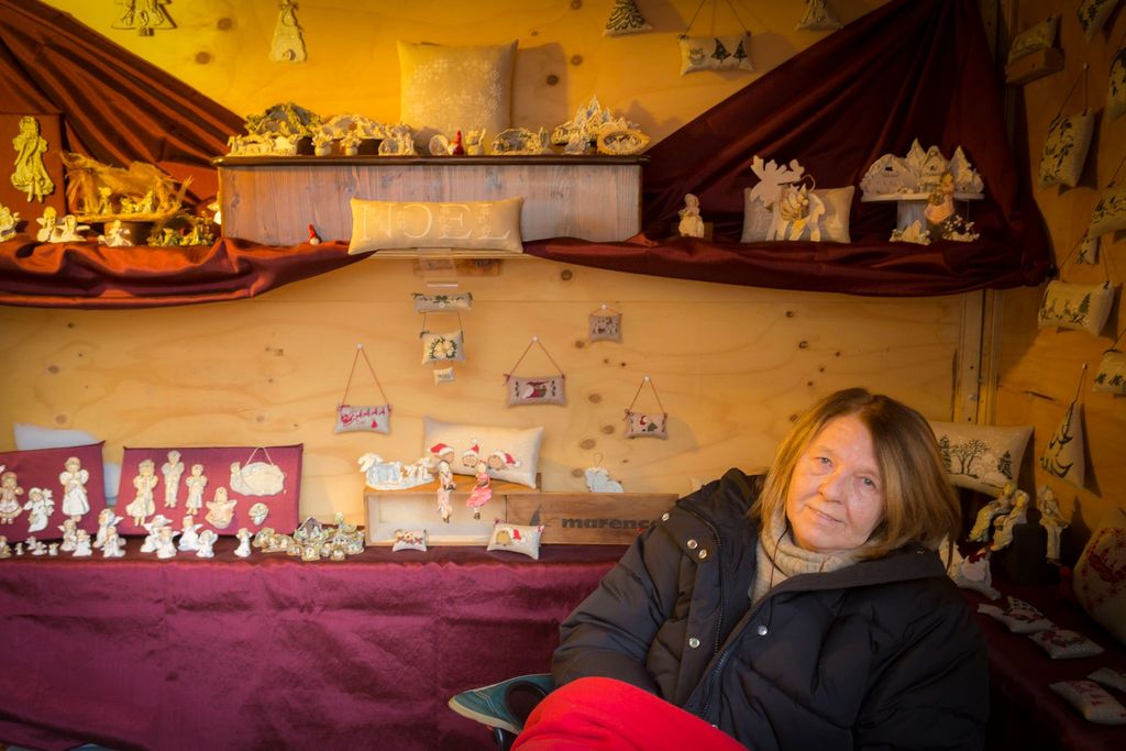 Gironzoliamo tra le casette, facendoci indicare i fedelissimi del mercatino. Sono tre, ci dicono, quelli presenti dal 2002 a tutte le ventuno edizioni. Il primo è Livio Mondin con le sue baite in miniatura, costruzioni in pietra e legno che ci restituiscono l'anima delle nostre alture, il nostro paradiso a pochi metri dal cielo. Ne espone oltre una ventina, capolavori di architettura e pazienza. Poco più avanti incontriamo Daniela Fava Piz, con i suoi piccoli cuscini, sacchetti, cuori e angioletti imbottiti e ricamati a punto croce con fiori, montagne, slitte e renne natalizie. Un'idea regalo delicata. Poi la casetta di Mario De Luca, di poche parole, ma di caldissime proposte: le mufle di Sordevolo, le antiche pantofole in panno, realizzate in pura lana. Ognuna è un pezzo unico, a tinta unita o variegata. Rigorosamente fatte a mano.