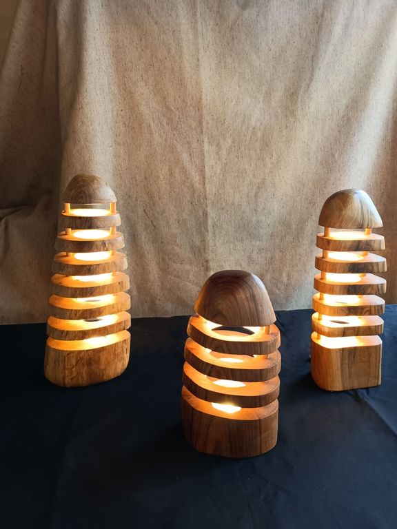 Ci trasferiamo verso il paese, in Biblioteca, dov'è allestita una delle mostre d'arte che completano l'offerta degli organizzatori. Bellissima sorpresa. Troviamo ad attenderci Bruno e Stefania Nicolo, padre e figlia, e si vede, artisti del legno. Bruno, boomer in ottima forma, ha appreso l'arte nella segheria di famiglia, a Verdobbio. Stefania, giovane e luminosa, è passata attraverso il liceo artistico e l'accademia. Partenze diverse per esiti ugualmente eccellenti. Bruno, che ha un laboratorio a Pollone e un’esposizione permanente nella baita di famiglia lungo il sentiero che porta alla Trappa, parla attraverso le sue opere, sintesi di figure umane, uscite da una sorta di metamorfosi. Viene voglia di accarezzarle. L'arte diventa design con le sue originalissime lampade, sezioni di lamelle ovoidali spezzate dalla luce. È legno che diventa spirito.