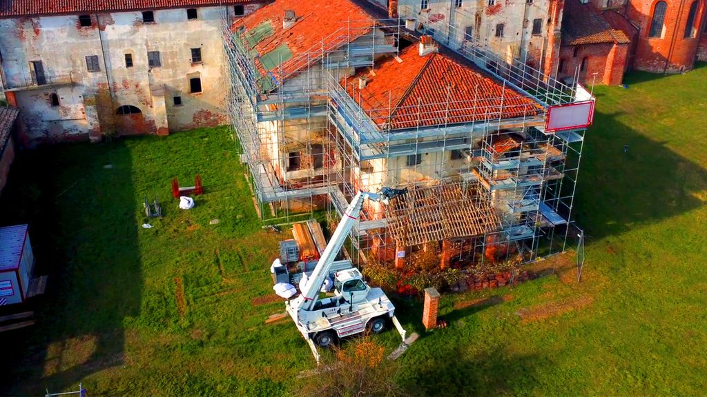Il primo lotto di lavori è iniziato ad ottobre 2023 con gli interventi di ripristino delle coperture della manica conventuale e della cascina alta. Dal 2022 è in atto un cantiere pilota portato avanti dal CCR sugli affreschi tardo gotici della parete sinistra del presbiterio che recano la firma di Giacomo Jacquerio, che terminerà nel mese di gennaio 2024. Il cantiere di analisi e di definizione delle metodologie di intervento è finanziato dalla Fondazione CRT (Bando Cantieri Diffusi 2021) e dalla Fondazione Magnetto di Alpignano. Dopo queste prime attività che si concluderanno a fine anno, in base ai risultati diagnostici e agli studi propedeutici, potrà essere avviato il secondo lotto di lavori, nel 2024-2025, che renderà accessibile la manica denominata “Corridoio degli Stemmi”, al primo piano, alla quale si accede dallo scalone monumentale nel cortile delle guardie e l’Ospedaletto che diventerà una struttura ricettiva di ristoro.