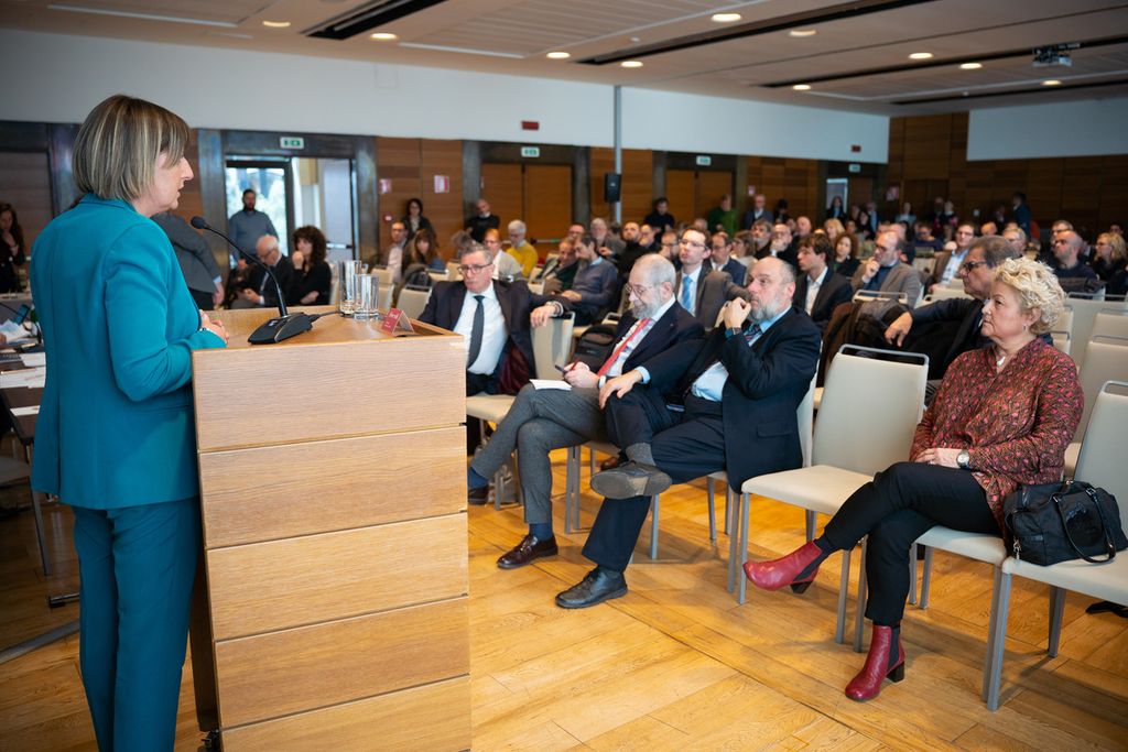 Nel corso dell’incontro, il filo rosso che ha legato tutti i relatori che si sono alternati è stato lo sguardo verso il futuro della cooperazione. Tutti a ribadire l'importante ruolo che le cooperative devono essere pronte a ricoprire nei prossimi anni, grazie alla loro capacità di unire impatto economico e valorizzazione territoriale. Nell’alternarsi delle tante voci intervenute, Marco Grazioli, di The European House Ambrosetti ha dato il nome al compito che spetta alle imprese cooperative: “Prendere posizione. Nel 2024 diventa fondamentale offrire un’alternativa forte all’individualismo: un’alternativa che può e deve essere data da voi cooperatori. Dovete essere orgogliosi della diversità che offrite al sistema. Sfidate le vostre convinzioni, non temete il cambiamento. La cooperazione, attraverso i motori dell’equità sociale e della solidarietà umana, può contribuire alla riduzione dei divari".