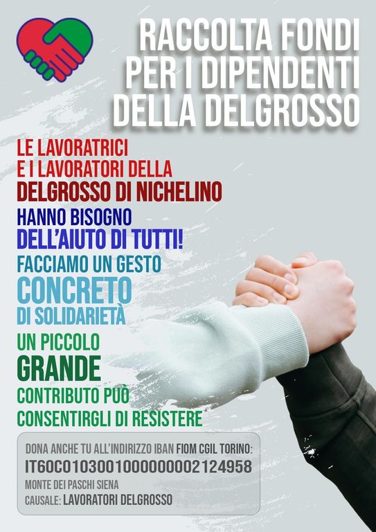 Ed allora, mentre sono in corso (grazie anche all'intermediazione della Regione) contatti con aziende che sarebbero interessate a rilevare l'impresa, nella speranza che dagli approcci si passi a fatti concreti, ci sono famiglie che non sanno come andare avanti, non avendo più ricevuto gli ultimi mesi dello stipendio. Ed allora l Fiom Cgil, assieme al Comune di Nichelino, ha deciso di lanciare una raccolta fondi per aiutare i dipendenti Delgrosso in questa fase così delicata.