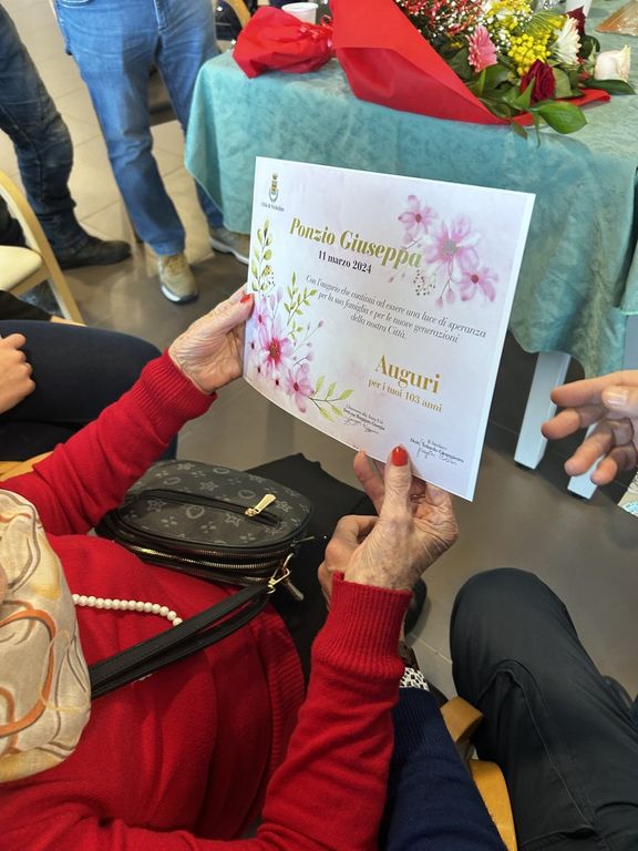Per lei la visita dell'assessore Ruggiero e del sindaco Tolardo: "Una vitalità contagiosa"