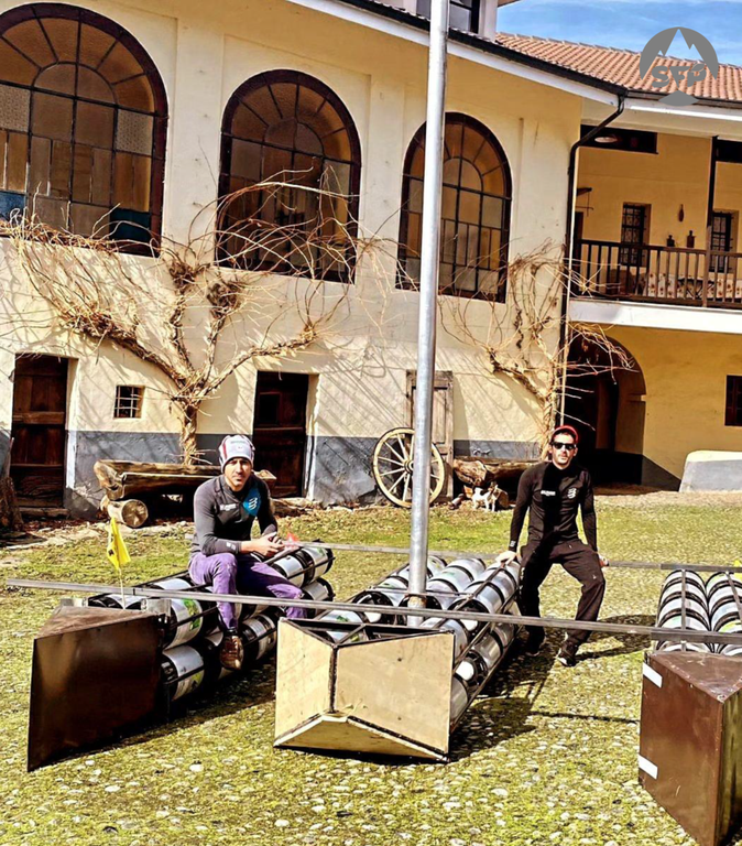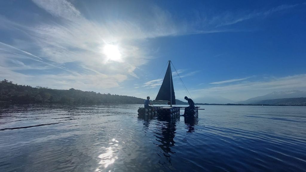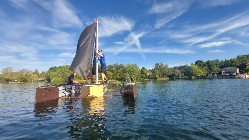 La zattera è frutto dell’ingegno e dell’impegno di Carlo e Gabriele, che hanno trasformato fusti di birra e altri materiali riciclati in una struttura che si distingue per la sua sostenibilità ambientale. Il lavoro artigianale di Carlo e le sue abilità nella saldatura e nell'assemblaggio hanno dato forma a una zattera robusta e funzionale. Gabriele, focalizzandosi su design e concetto, ha guidato il processo creativo, garantendo che la zattera non solo rispondesse ai requisiti funzionali, ma incarnasse anche un'espressione tangibile di sostenibilità. L'uso di materiali di recupero non solo riduce l'impatto ambientale, ma testimonia anche la possibilità di creare soluzioni innovative partendo da risorse già esistenti. Un mezzo che diventa un vero e proprio simbolo di impegno per un mondo più sostenibile.