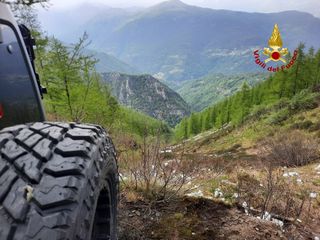 Oggi pomeriggio un fuoristrada con targa svizzera è rimasto in bilico con le ruote su un dirupo. Per soccorrere i due occupanti sono intervenuti i vigili del fuoco di Pinerolo