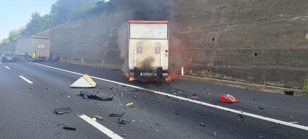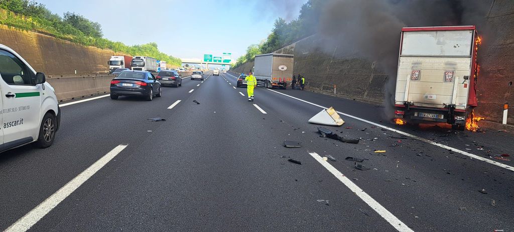 Furgone in fiamme ad Interporto Sito: traffico bloccato in Tangenziale