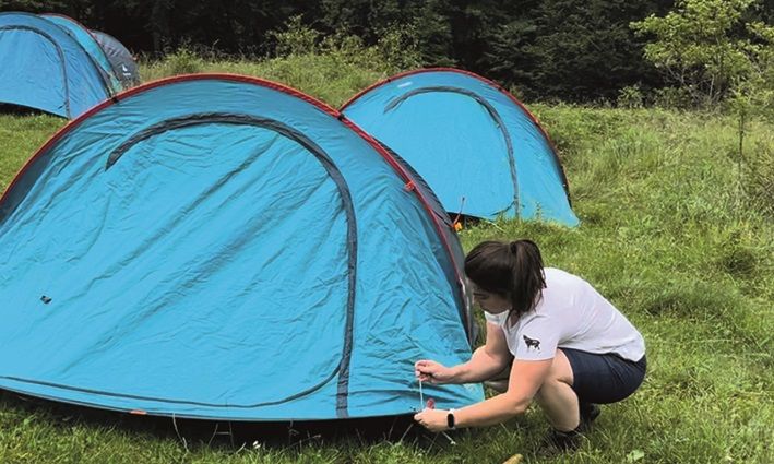 Esatto. Appena prima del colle della Mezzaluna, abbiamo trovato un campo tendato perfettamente attrezzato grazie al nostro staff di supporto; siamo stati accolti con un piccolo aperitivo, la possibilità di fare una doccia e uno splendido piatto di “Zemin” preparato dalla Pro Loco di Rezzo. Notte in tenda, dove il silenzio è interrotto solo da qualche mucca al pascolo, in un’atmosfera unica per il contatto diretto con la natura. Di buon mattino, dopo una colazione energetica a base di caffè, pane di Triora e marmellata locale, ci dirigiamo verso il colle del Garezzo.