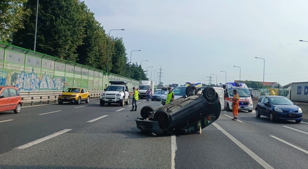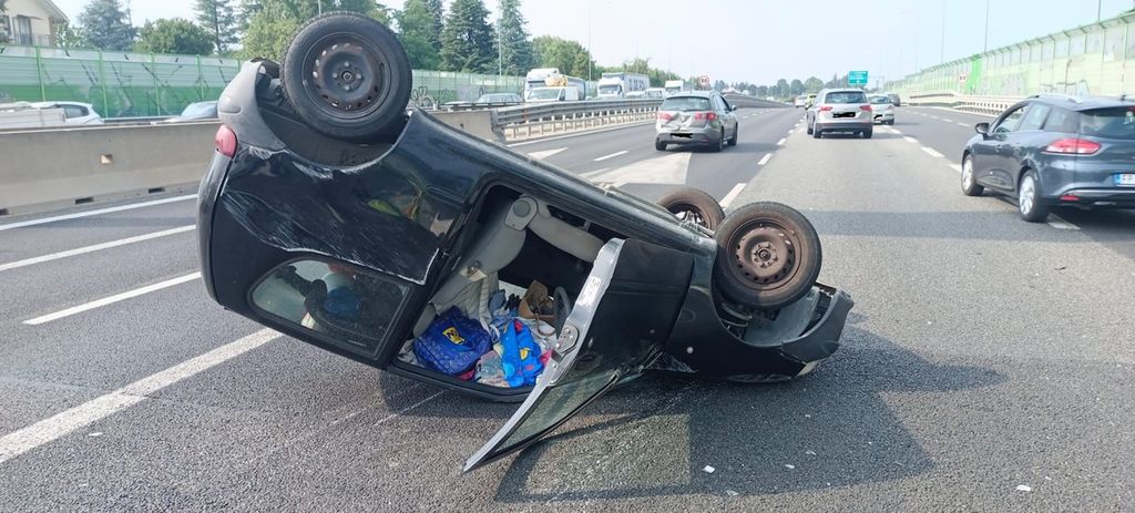Incidente sulla Tangenziale Sud: tre veicoli coinvolti, un'auto ribaltata e traffico in tilt
