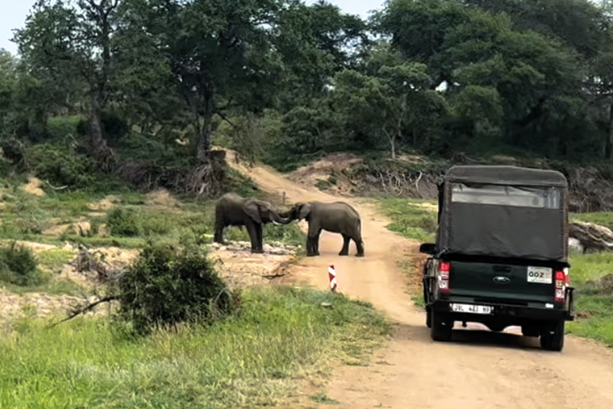 Chilometro dopo chilometro la natura prende il sopravvento e la città scompare alle nostre spalle. In circa tre ore, raggiungiamo la prima tappa: la frontiera con il Sudafrica. Al confine ci sono doppi controlli e ci aspetta una lunga coda, per entrare nel “Paese di Mandela”. Le due nazioni sono agli antipodi da ogni punto di vista e anche polizia lo manifesta, nella particolare rigidità mostrata verso le “persone di colore”. Alle quattro e mezza del mattino arriviamo all'ingresso del Kruger Park, dove ci aspetta un’intera giornata a disposizione per la visita. Il sole è già spuntato, i colori sono intensi e il paesaggio è mozzafiato. Appena entrato, e’ la mia prima volta in un parco africano, il cuore batte forte e la curiosità aumenta ogni minuto di più.