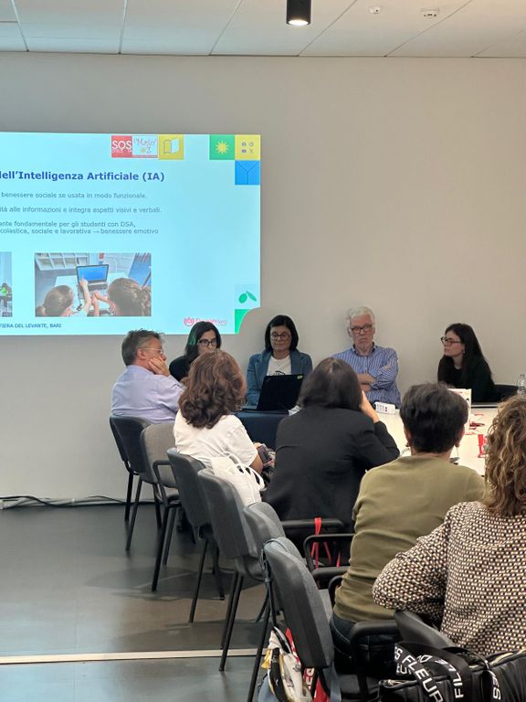 Tra questi anche i referenti clinici, il Prof. Stella e il Dr.Messina, e parte del Comitato Scientifico della rete Nazionale SOS Dislessia, intervenuti per condurre un workshop sulle nuove prospettive dell’uso dell’AI nei disturbi dell’apprendimento, mirato a riflettere e condividere sempre buone prassi che la rete di professionisti continua a seminare per studenti con questo tipo di difficoltà. Il dr. Sergio Messina ha presentato un contributo molto interessante relativo all’evoluzione della lettura dai primordi all’introduzione dell’AI; la dr.ssa Jennifer Francioli, referente clinico del Centro SOS Dislessia Domodossola-Verbania, ha presentato i risultati relativi ad una ricerca sui correlati emotivi, positivi e negativi, associati all’introduzione di strumenti tecnologici e la fruizione dell’AI da parte degli studenti con DSA e BES; la dr.ssa Claudia Liuzzi, Logopedista specializzata della rete SOS Dislessia, ha presentato un caso clinico per riflettere in merito a quanto tecnologie e AI possono essere uno strumento indispensabile per il successo scolastico degli studenti ,ed infine il prof. Giacomo Stella, responsabile scientifico della rete, si è occupato di introdurre il tema dell’AI come un alleato degli studenti con difficoltà. Tutti i relatori sono stati coordinati dalla moderatrice Dr.ssa Sara Bianco, referente clinica del Centro SOS Dislessia di Bari.
