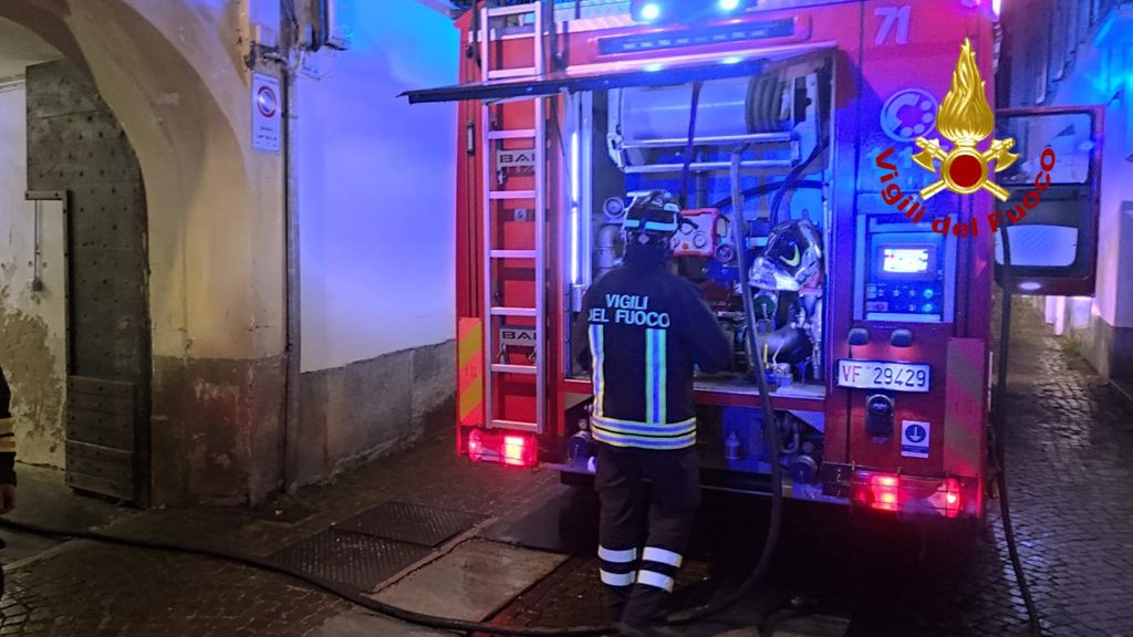 Pinerolo, brucia una cantina nel centro storico: i vigili del fuoco arrivano e spengono le fiamme