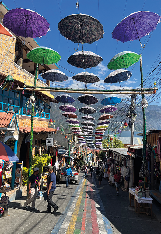 Ma è la riva del lago che mi attirava come una calamita. Camminando lungo il molo, osservo le barche in legno dai colori sgargianti che ondeggiano leggere, pronte a salpare verso i villaggi sparsi sulle sponde opposte. Decido di salire su una di queste imbarcazioni, il motore “scoppietta" mentre cominciano i preparativi per la partenza. Il vento mi accarezza il viso, portando con sé il suono ritmico delle onde contro lo scafo. San Juan La Laguna, il villaggio dove approdiamo, è come un manifesto spirituale. Qui, le donne delle cooperative lavorano con mani esperte, tingendo fili di cotone con pigmenti naturali estratti dalle piante. Ogni movimento, ogni gesto racconta una storia tramandata di madre in figlia. Una di loro, un’artigiana dagli occhi profondi e gentili, tesse gli “Huipiles”; sono indumenti dai colori accesi che risalgono al mondo Maya, ancora oggi presenti nella tradizione locale. Ogni suo racconto parla di leggende antiche, di dei e spiriti, mentre il fruscio del telaio si mescola al canto degli uccelli. Ritorno a Panajachel al tramonto quando i vulcani, ombre solenni, vegliavano silenziosi, mentre il lago riflette le ultime luci del giorno come uno specchio perfetto. Ogni suono, ogni sorriso, ogni carezza del vento ti lascia un’impronta profonda, un ricordo vivido e indelebile di un luogo da ricordare. Dopo aver lasciato la quiete mistica del lago, arrivo a Chichicastenango, un famoso mercato che è un’esplosione di colori, suoni e odori. La vivacità, subito mi travolge: le voci dei venditori si intrecciano in un coro fatto di folclore, e mai chiassoso. L’aria è intrisa del profumo degli incensi, mentre le bancarelle traboccano di maschere cerimoniali, tessuti stravaganti e gioielli in argento. Ogni angolo, racconta un mosaico di tradizioni antiche e moderne che danzano insieme.