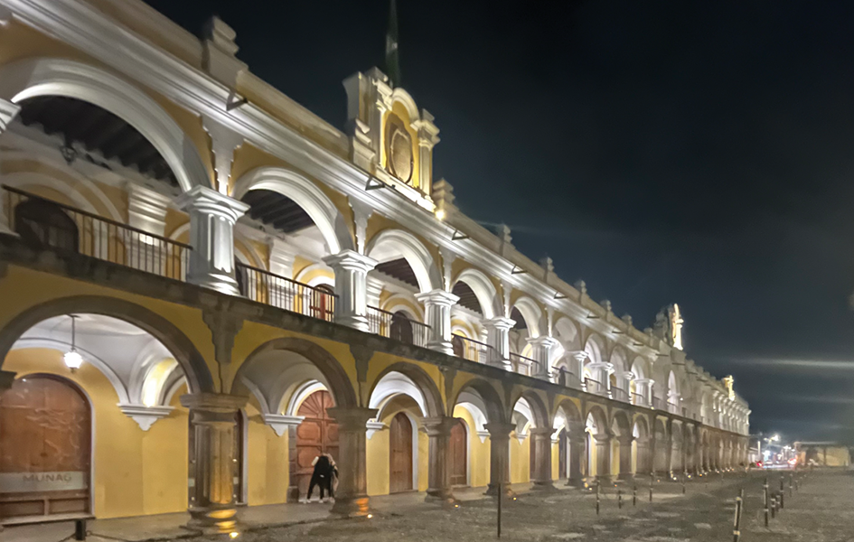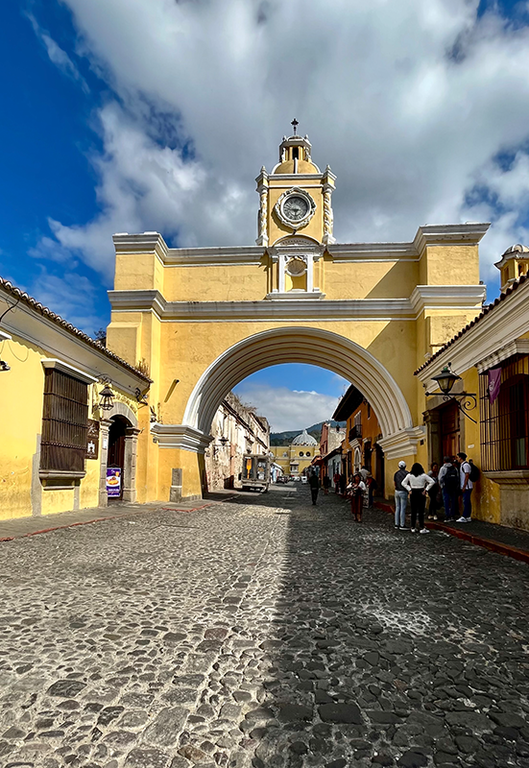 Da lì, mi dirigo ad Antigua, un capolavoro coloniale che si adagia tra i vulcani Agua, Fuego e Acatenango. La città mi accoglie con le sue facciate dai colori pastello e l’eleganza delle chiese barocche. Ogni edificio parla di una storia antica, di un tempo in cui la città era un gioiello dell’impero spagnolo. Passeggiare per le sue vie, significa respirare un’aria sospesa dal presente. Il tramonto sotto l’Arco de Santa Catalina merita il viaggio: le ombre si allungano e la città si accende lentamente. Antigua, è il cuore pulsante del Guatemala! Dietro le porte di legno intagliate, c’è un mondo inaspettato: giardini lussureggianti pieni di fiori tropicali, dove il verde si sposa con i colori accesi di strane buganvillee . Ogni cortile è un’oasi, uno spazio dove la natura dialoga con l’architettura coloniale, fatta di archi e fontane che sussurrano racconti di epoche passate. Le strade acciottolate conducono a palazzi coloniali con balconi adornati di ferro battuto, affacciati su piazze animate da musica tradizionale. Qui la “Marimba” vibra e risuona, fondendosi con la vitalità dei mercati artigianali, dove anche le ceramiche dipinte raccontano l’identità di un popolo. L’arte è ovunque: dalle gallerie misteriose che espongono opere di artisti locali, alle pareti per strada dipinte con murales che narrano di leggende Maya. La città è anche una sinfonia di sapori, un viaggio sensoriale che trasporta in un mondo fatto di dettagli, dove ogni portone è la promessa di una buona pietanza. Antigua è soprattutto un luogo d’incontri, con una popolazione che porta con sé l’orgoglio di una tradizione mai dimenticata.