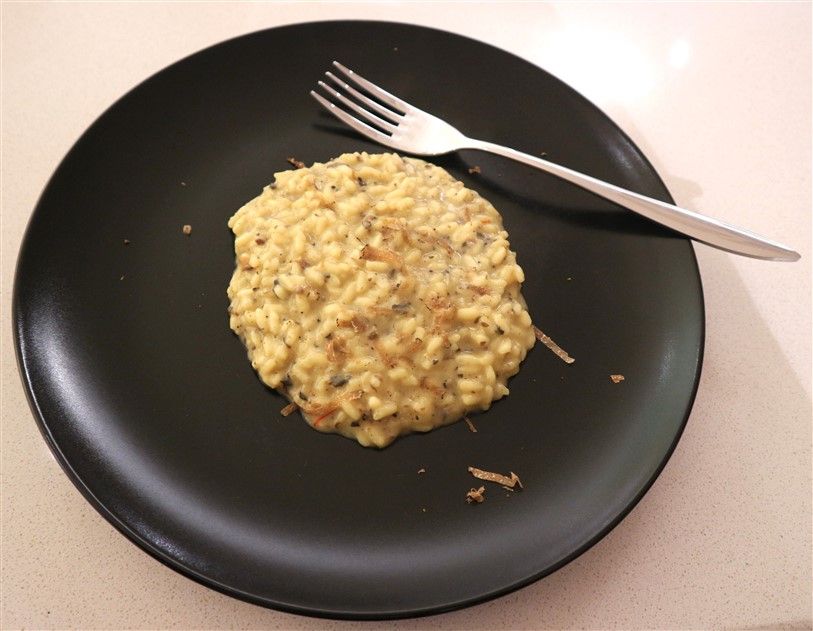 Questo piatto è stato realizzato utilizzando prodotti di grande eccellenza come il riso “Vero”, il Gorgonzola Bassi, Parmigiano 30 mesi di Boni e tartufo nero di Urbani, abbinati agli ottimi vini delle rinomate cantine Cocchi e Bava.