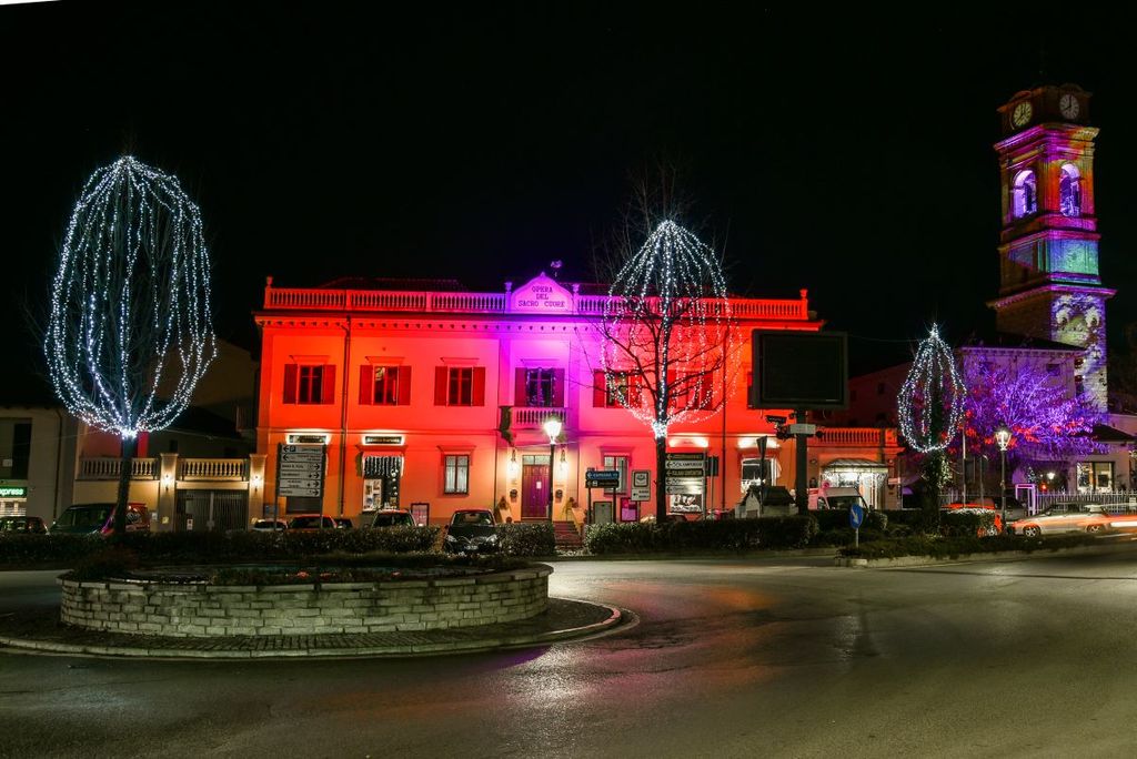 Infatti, qui i monumenti parlano: lo fa il Mascherone, fontana del 1622, che racconta la sua storia e dialoga con l’albero centenario Frondo, nel parco comunale. Altri comunicano grazie alle immagini realizzate con il videomapping: la Torre dell’Orologio, gli edifici di piazza San Lorenzo, la chiesa parrocchiale, le chiese delle borgate: musica e cascate di colori per immergersi in un vero e proprio villaggio magico, capace di incantare i cuori. Punto speciale per i bambini con attività interattive in piazza Mautino.