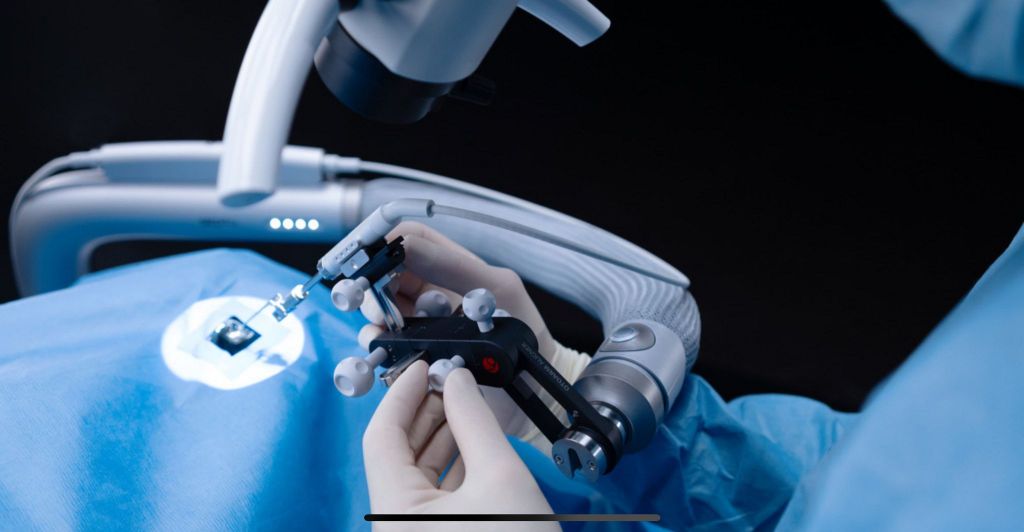 La nuova tecnologia un braccio meccanico progettato per definire precisamente la traiettoria degli strumenti chirurgici, mantenendo esattamente la posizione e l'angolo desiderati e riducendo il tempo totale della chirurgia.