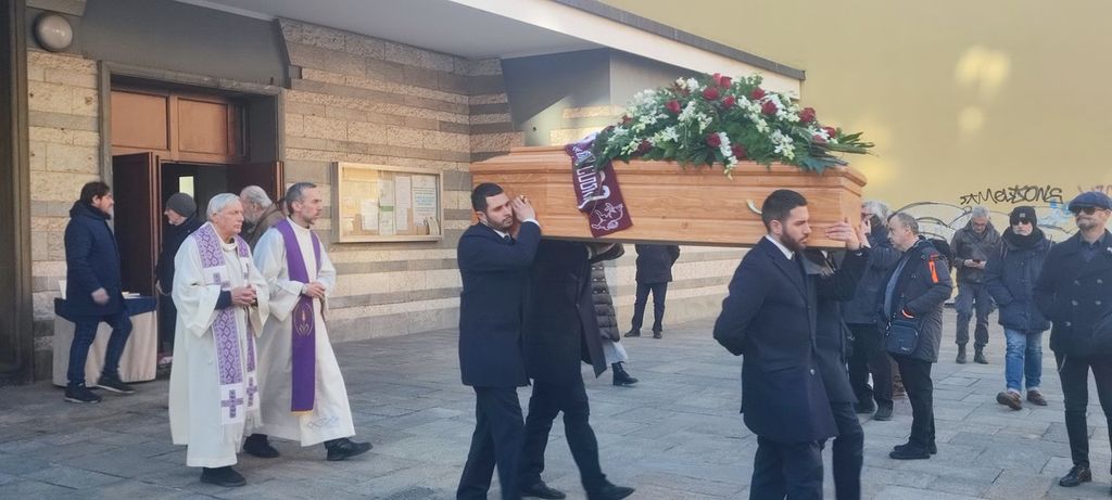 L'ultimo saluto a Gian Paolo Ormezzano con al centro i colori granata