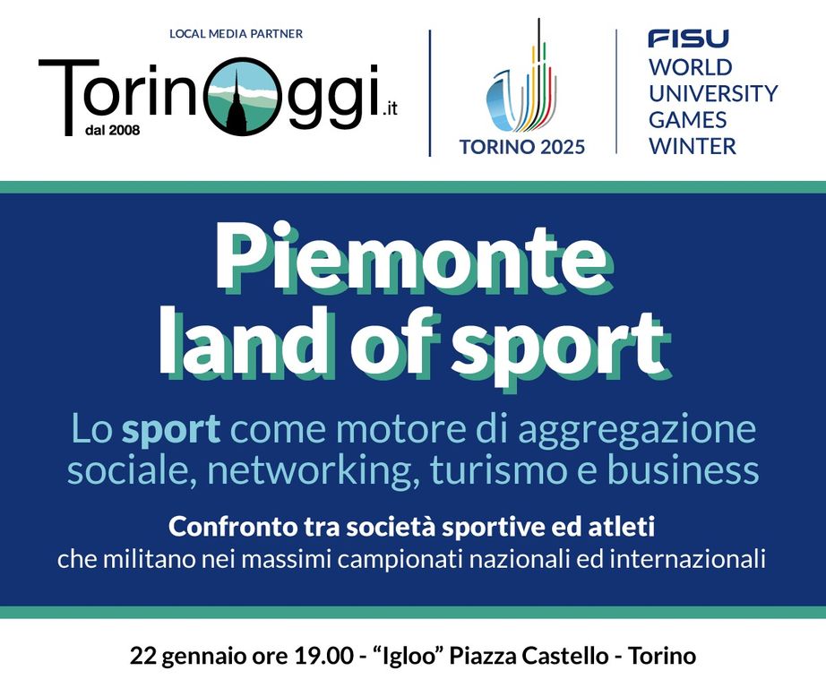 Il 22 gennaio, nel contesto delle Universiadi, alle ore 19 presso l’Igloo in Piazza Castello a Torino è in programma il primo confronto tra società sportive ed atleti che militano nei massimi campionati nazionali ed internazionali, nonché società giovanili che da sempre svolgono un ruolo primario nel formare i campioni del futuro.