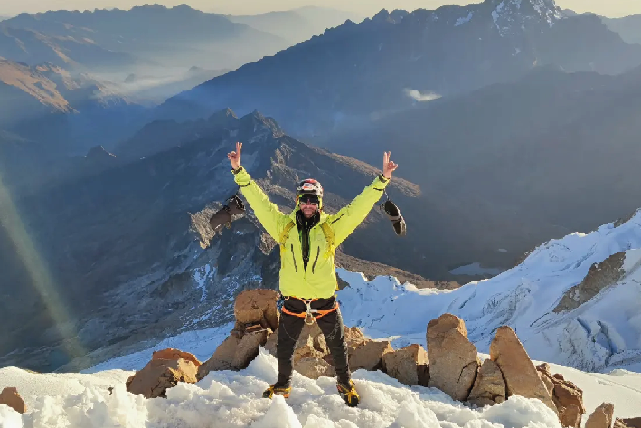 L’Huayna Potosí, con i suoi 6.088 metri, è stata la mia prima vetta di questa altitudine. Non è una montagna tecnicamente difficile, ma richiede resistenza e determinazione. Siamo partiti in gruppo nel cuore della notte, camminando con la sola luce della lampada frontale per vedere l’alba da lassù. E’ stata un’esperienza che non dimenticherò mai, difficile da descrivere a parole. Mi sono trovato in un luogo, dove il cielo sembrava più vicino e i colori erano più intensi; è stato un momento di pura connessione con la natura e con me stesso. Ho provato timore, eccitazione, e una gioia immensa nel raggiungere la vetta. Ogni passo mi ha insegnato qualcosa, ed è come se in quel momento tutto avesse avuto senso. Scalare un 6.000, però, richiede preparazione. Mi ero allenato molto sulle “Nostre Alpi” prima di partire, sia fisicamente che mentalmente, perché volevo affrontare la sfida al meglio.