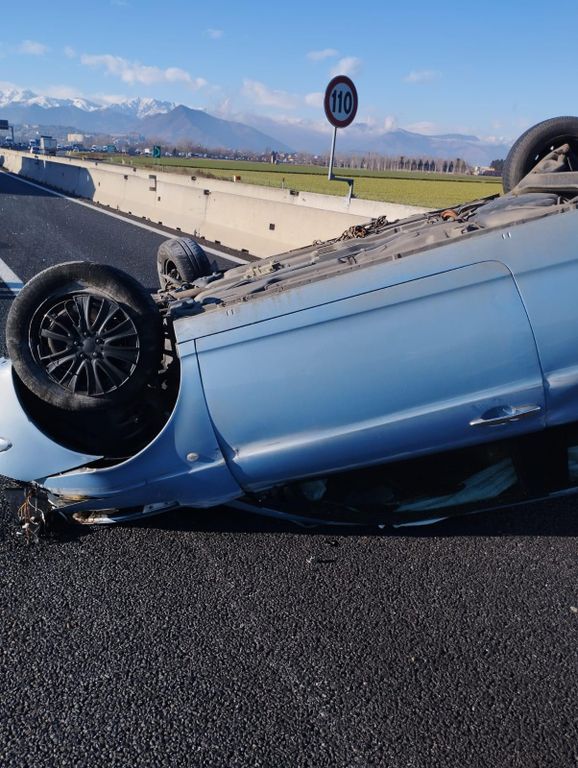 Tangenziale trappola: auto si ribalta all'altezza del sito, traffico paralizzato