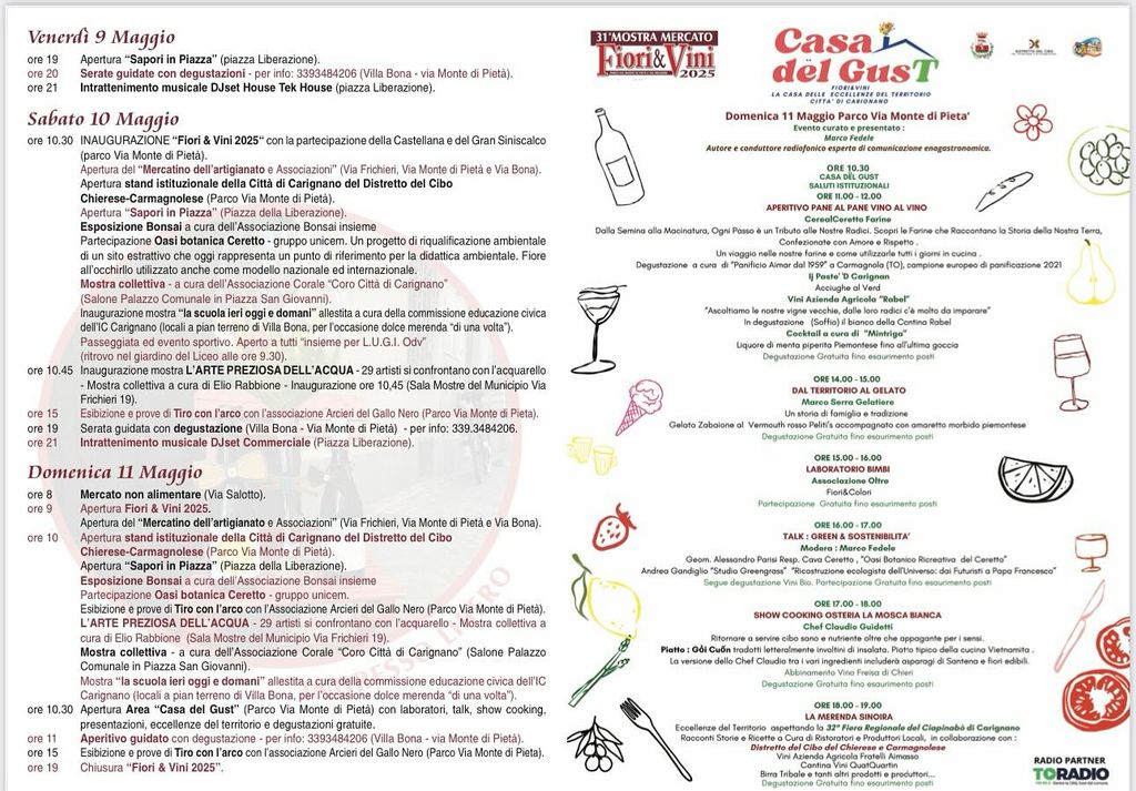 Ma l'attenzione sarà calamitata anche da "Casa Dél Gust", la grande novità di questa edizione. Questo spazio esclusivo sarà interamente dedicato alle eccellenze del territorio Carignanese e del Distretto del Cibo del Chierese e Carmagnolese offrendo un'immersione autentica nel cuore delle tradizioni e dei sapori piemontesi. Il format, curato e presentato da Marco Fedele noto autore, conduttore radiofonico ed esperto di comunicazione enogastronomica coinvolge realtà enogastronomiche ,produttori e ristorazione locale . Non mancheranno Talk e incontri dedicati al green e sostenibilità